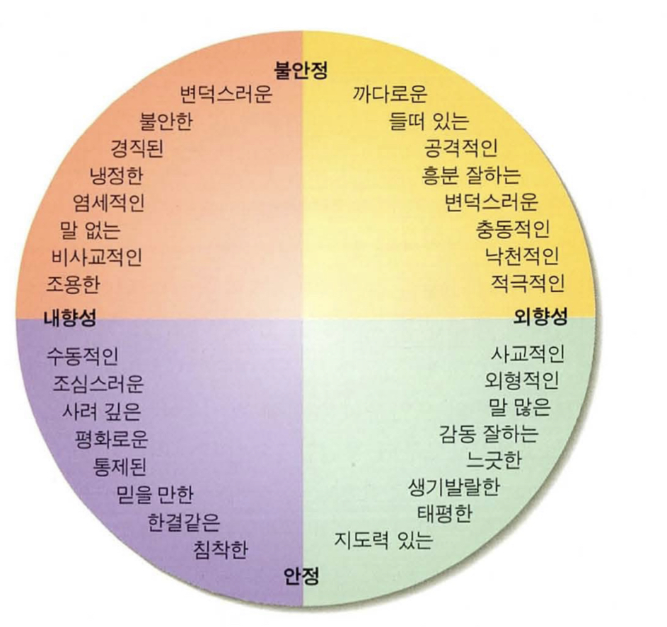 아래 그림에는 이러한 두 차원이 조합되어 나타나는 많은 하위 특질이 제시되어 있다.